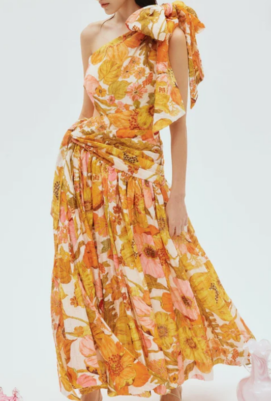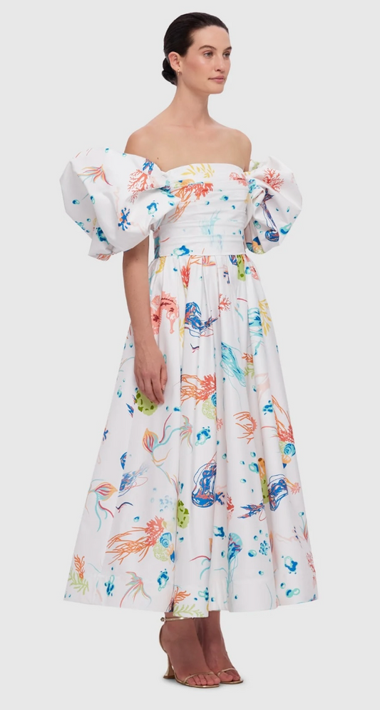 Leo Lin Matilda Puff Sleeve Midi Dress - Twilight Print
