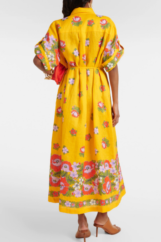 Alemais Belted floral linen shirt dress Mytheresa Exclusive