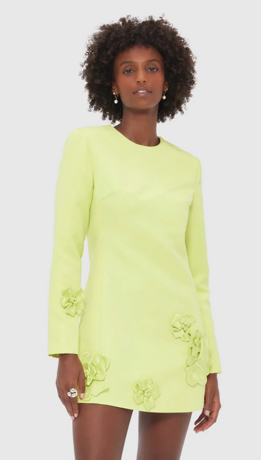 Leo Lin Aliza Long Sleeve Petal Mini Dress - Chartreuse