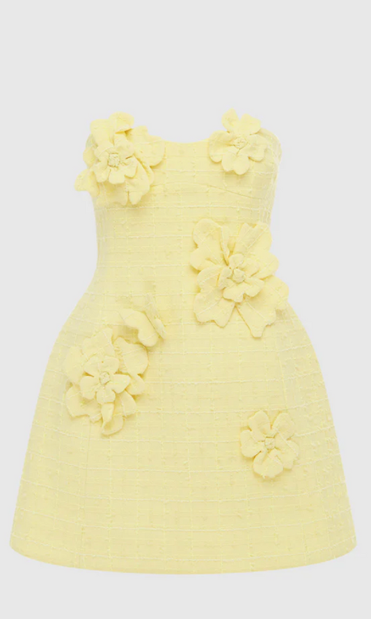 Leo Lin Rosario Tweed Petal Bustier Mini Dress - Sorbet Yellow