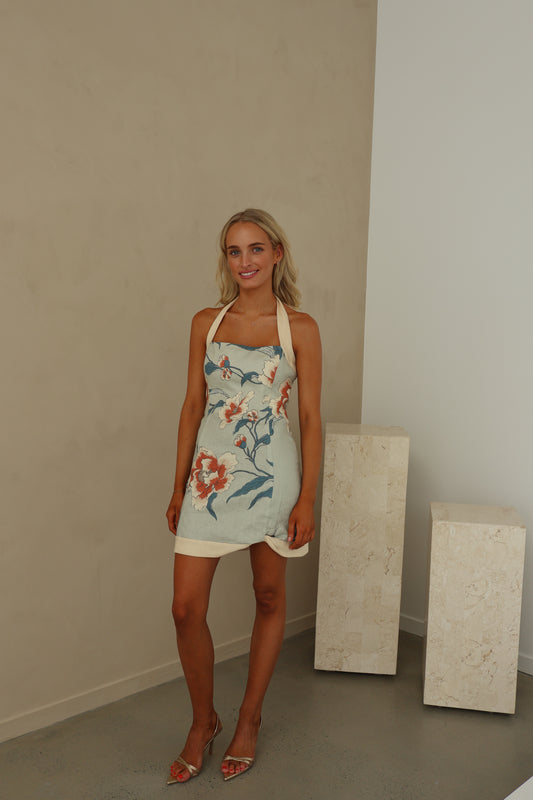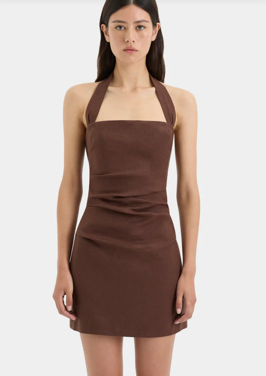 Sir the label Caprera Wrapped Silk Halter Mini Dress