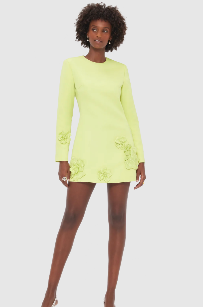 Leo Lin Aliza Long Sleeve Petal Mini Dress - Chartreuse