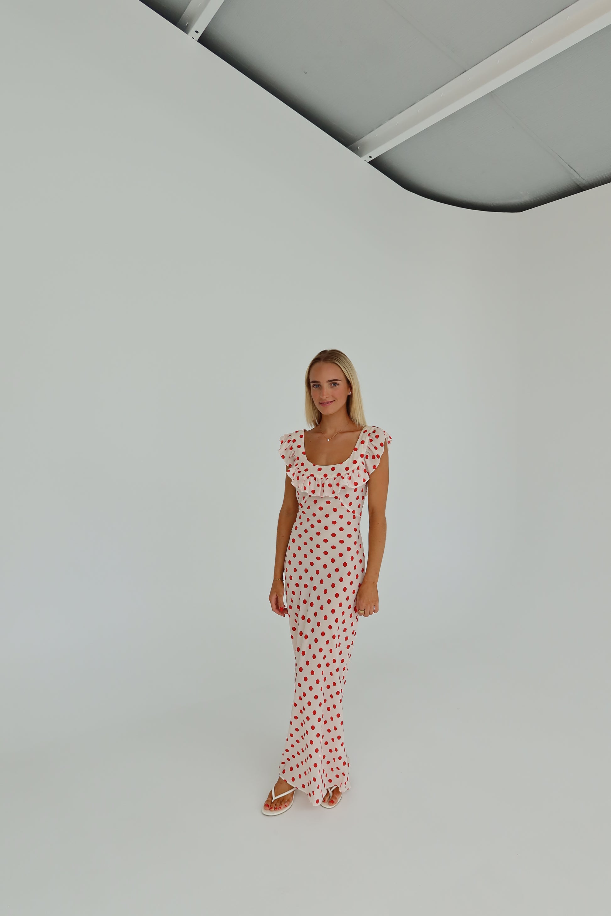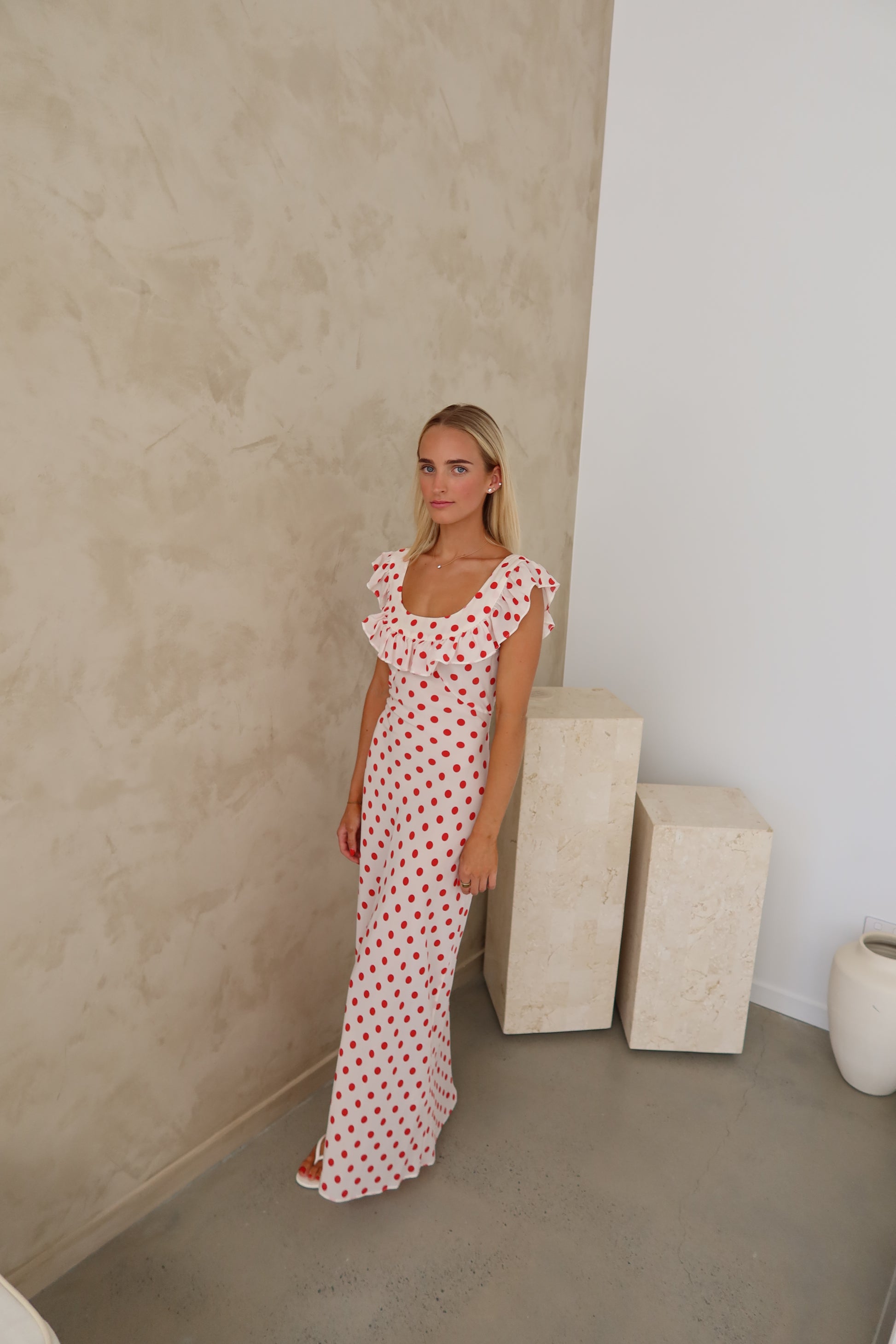 The Claudia Dress, Schiffer’s favourite piece and namesake design, with its signature cream base, with bold, red polka dots, combines timeless charm and effortless elegance. Defined by the supermodel's style in the '90s, this dress is the epitome of chic, with a silhouette that flatters every figure and a playful, yet sophisticated polka dot print that transitions effortlessly from day to night.
