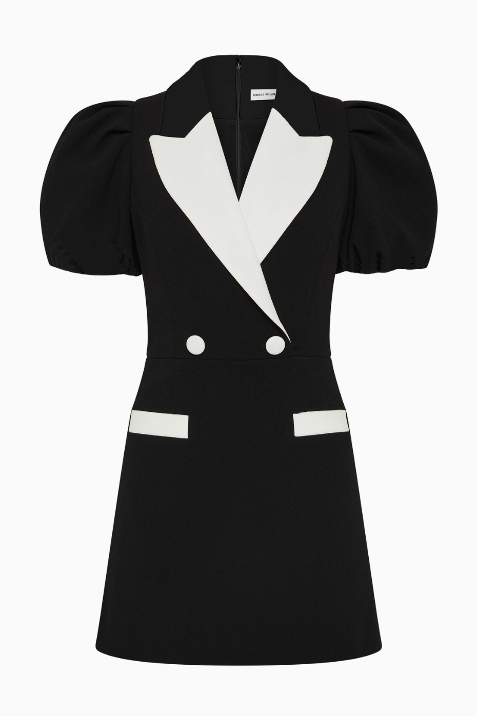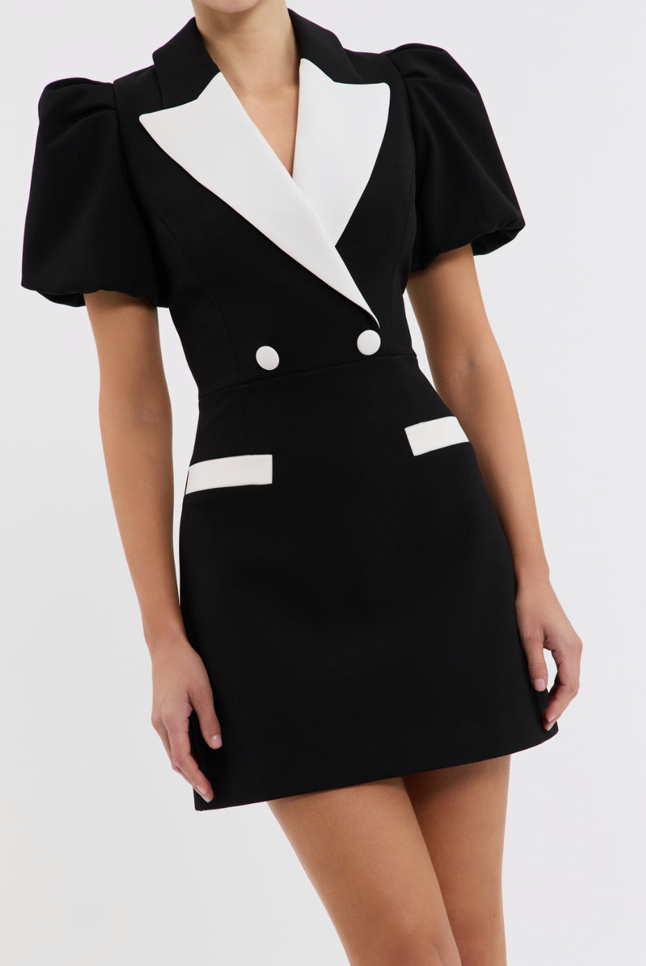 This Emma Mini Dress is the perfect item featuring a timeless black and white color palette for a classy look.